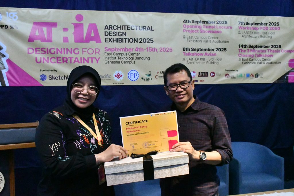 Program Studi Arsitektur, Sekolah Arsitektur, Perencanaan dan Pengembangan Kebijakan (SAPPK) ITB kembali menggelar ATRIA: Architectural Design Exhibition 2025, sebuah pameran karya desain arsitektur yang berlangsung pada 4–15 September 2025 di Exhibition Hall East Campus Center, ITB.